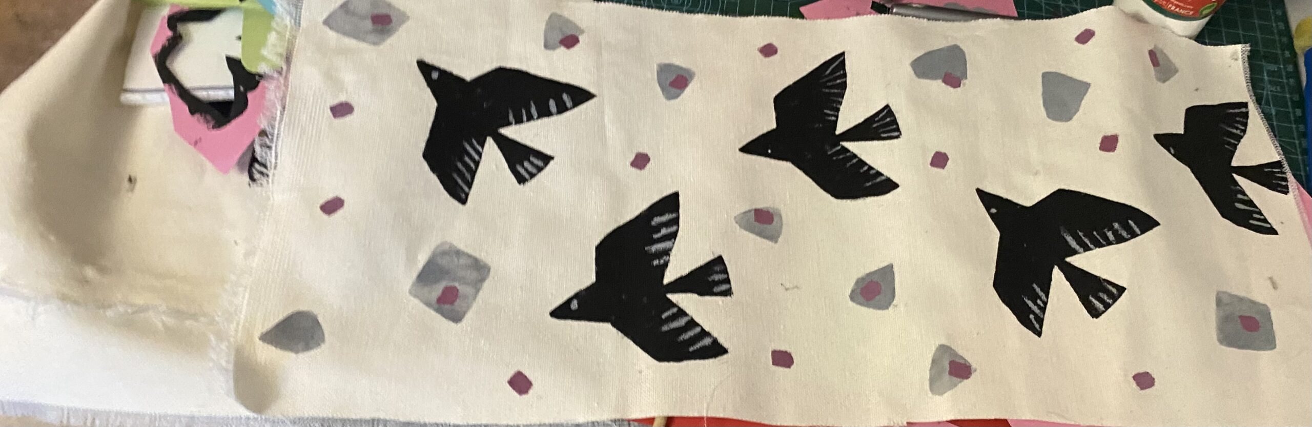 Il s’agira de découper de petits pochoirs en papier et imprimer leurs formes sur le tissu pour composer une image magique et unique. Tu pourras jouer avec les couleurs, les motifs et les superpositions pour inventer ton propre design.