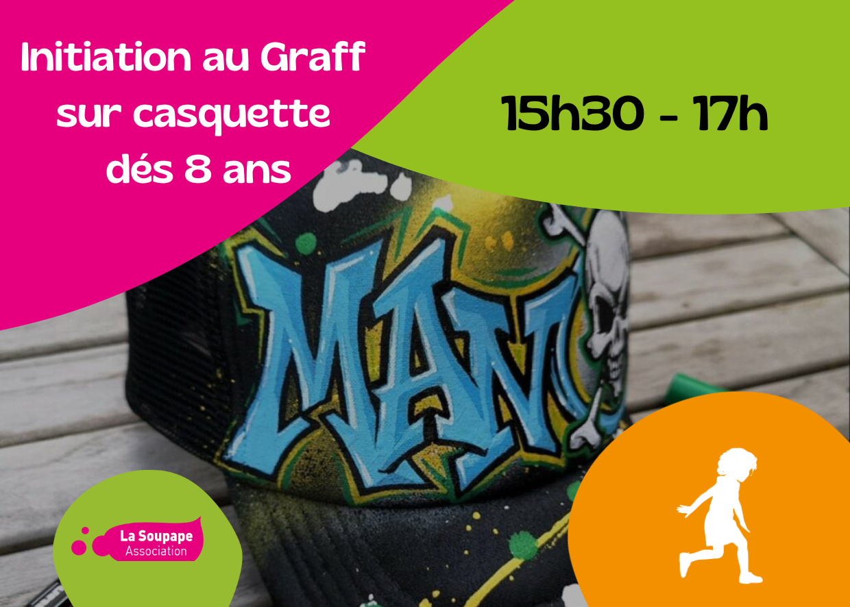 Viens participer à l’atelier Graffiti sur casquette, réalise ton prénom ou la création de ton choix que tu pourras ramener avec toi (casquette fournie)