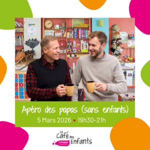 Puis, un café des papas, un samedi par mois, qui réunit des papas et leurs enfants afin d’échanger sur leur quotidien et sur leur parentalité.